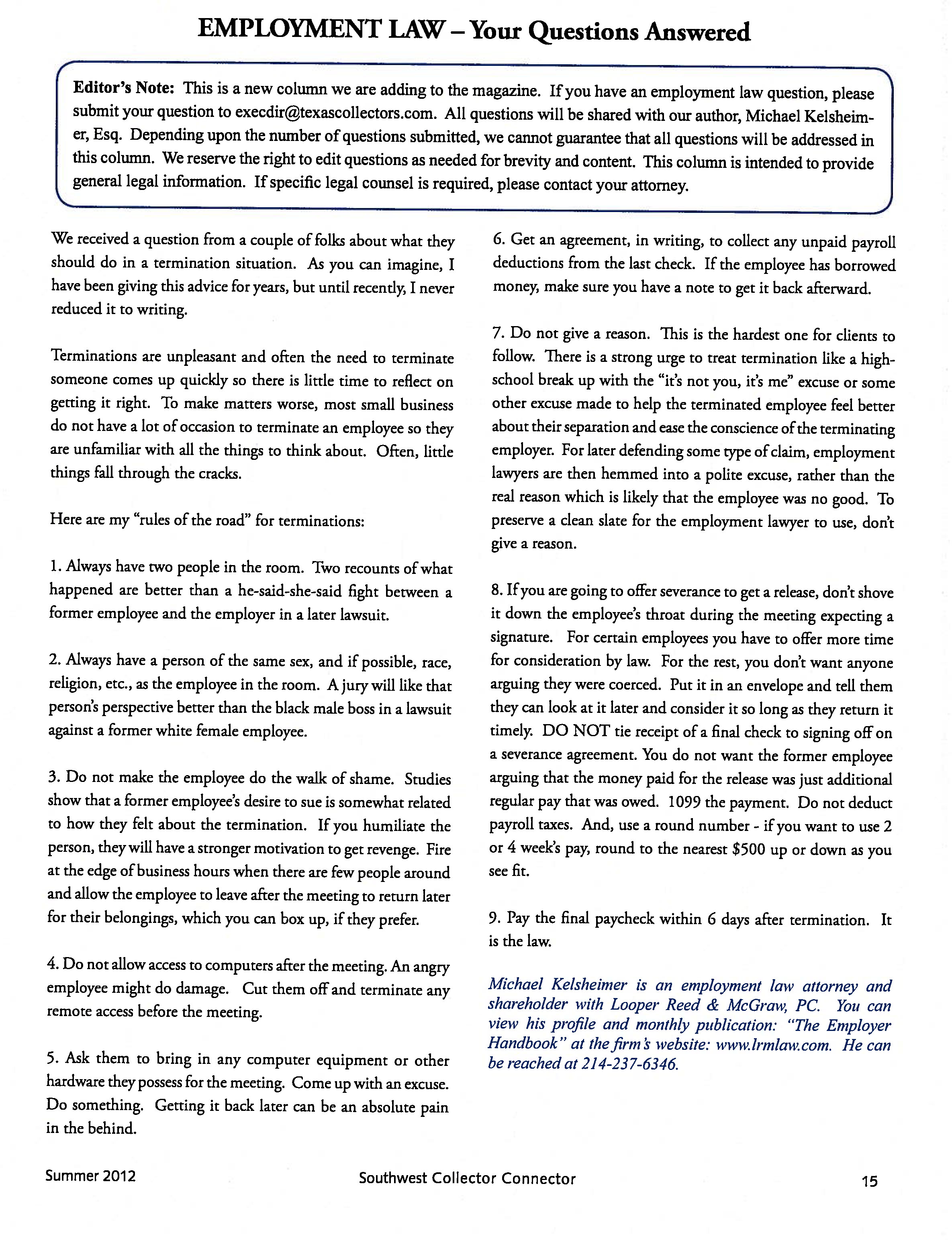 Visibility Magazine September 28, 2009 - Are Companies Required to Hire Back Those They Laid Off as the Economy Improves