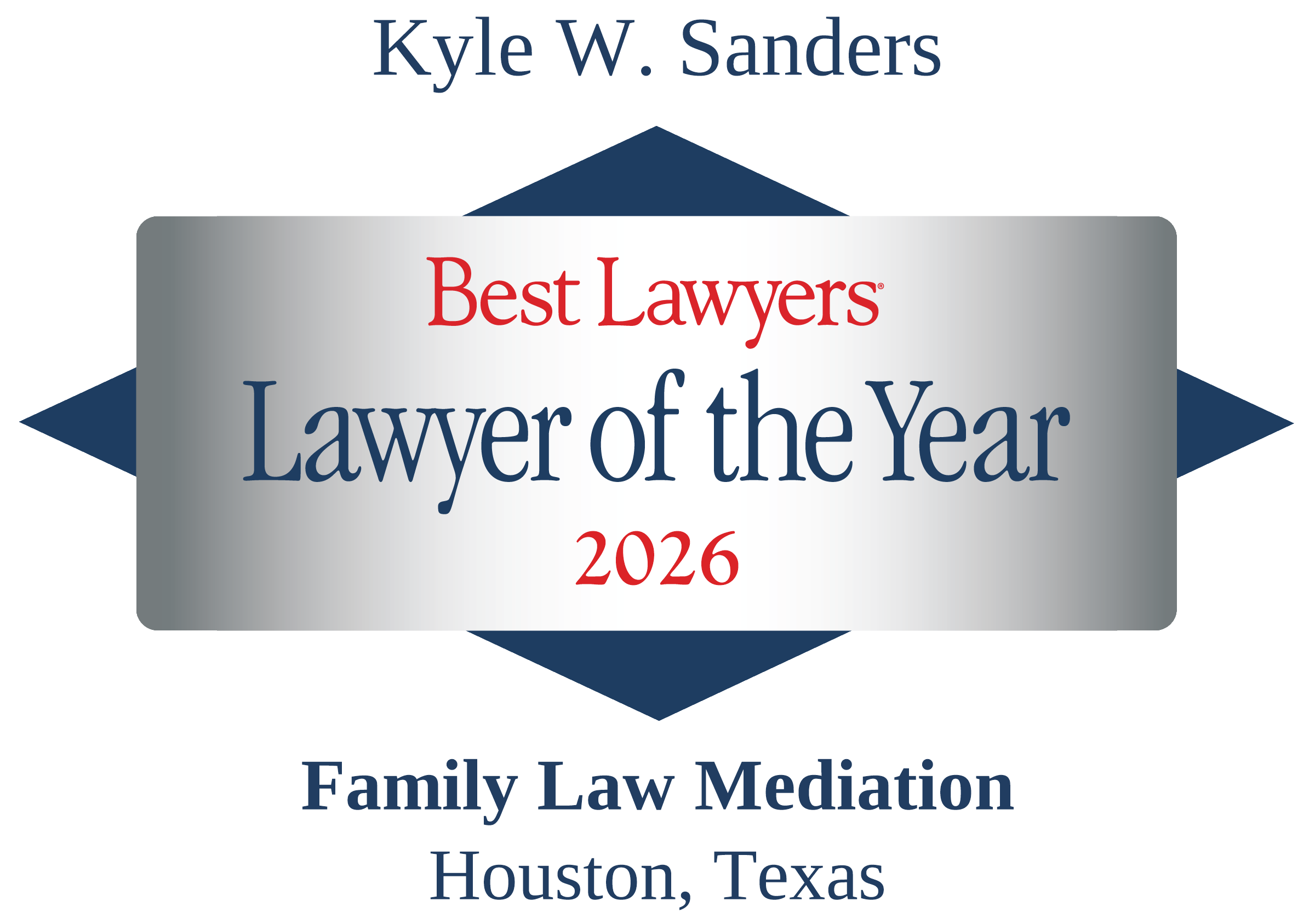 Kyle is Board Certified in Family Law by the Texas Board of Legal Specialization. In 2018, 2021 and 2024, Kyle was recognized as the “Lawyer of the Year” for Family Law Mediation in Houston by The Best Lawyers in America and in 2020, Kyle was named “Lawyer of the Year” for Family Law in Houston.