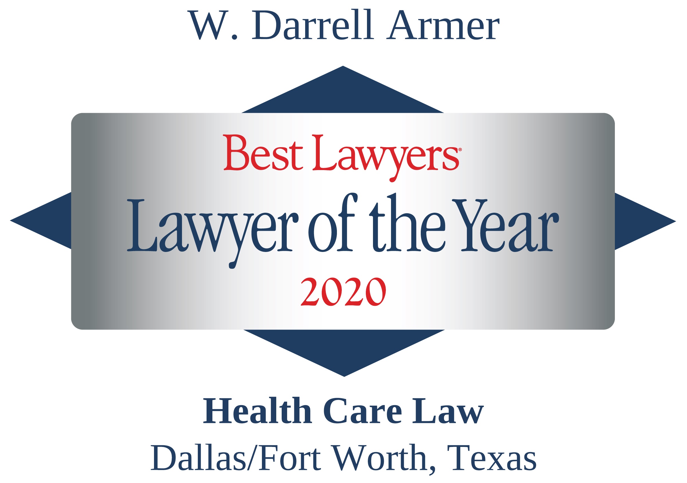 • Recognized as the "Lawyer of the Year" for Health Law in Dallas by The Best Lawyers in America (2020)